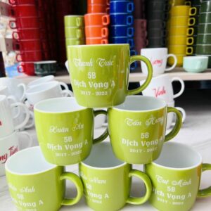 2. Số lượng đặt in logo trên cốc sứ với công ty và thời gian nhận hàng
